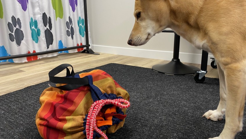 A puzzle bag designed to take your puzzles and treats with you on a trip!